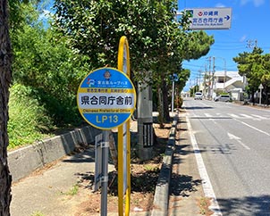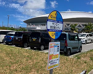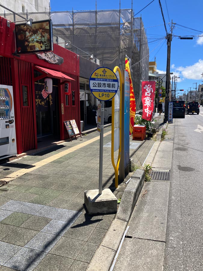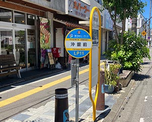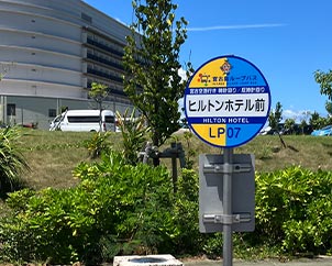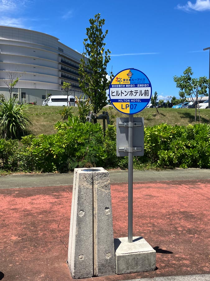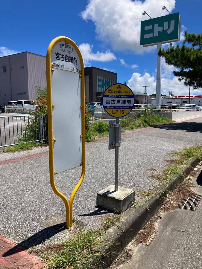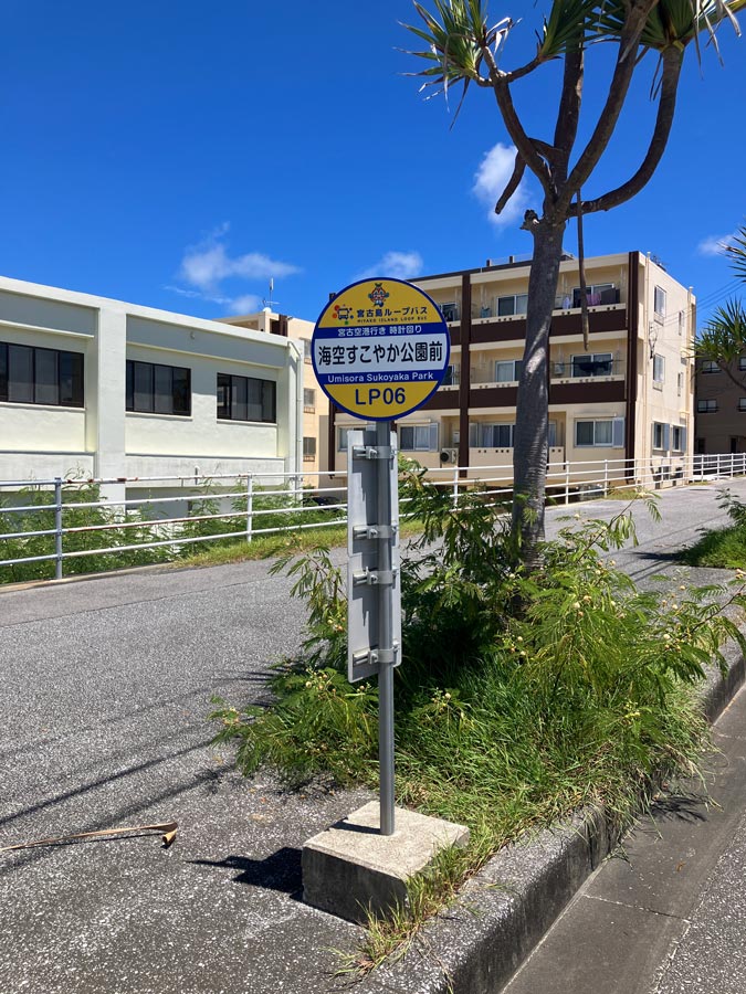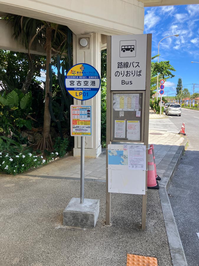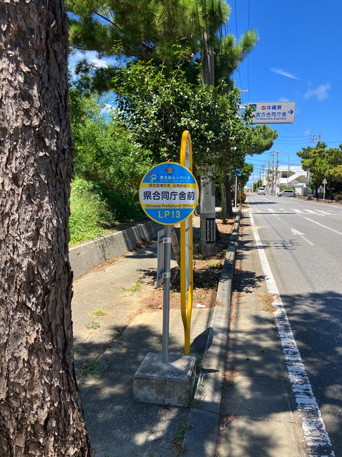 宮古島最大のショッピングセンターで、24時間営業のマックスバリュのほか、地元産の新鮮な野菜や果物が並ぶ農産物直売所「ワイドー市場」や島唯一のマクドナルド等、多くの店舗が集積しています。停留所はホテルライジングサン宮古島前にあります。
