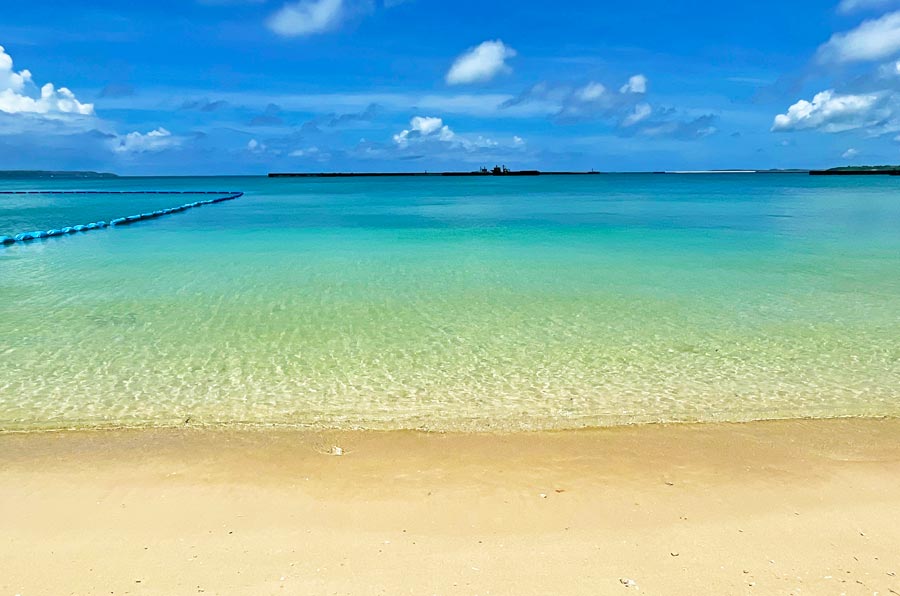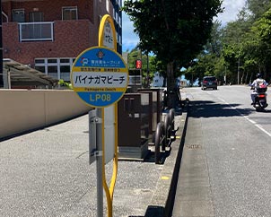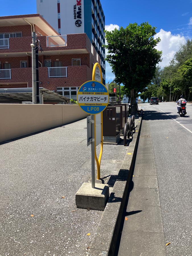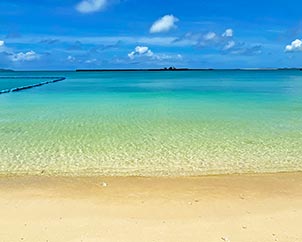 パイナガマビーチは宮古島の方言で「南の長い浜」を意味します。長い遊歩道が整備されており、夕暮れ時のお散歩がおすすめです。停留所はホテルサザンコースト宮古島前にあります。